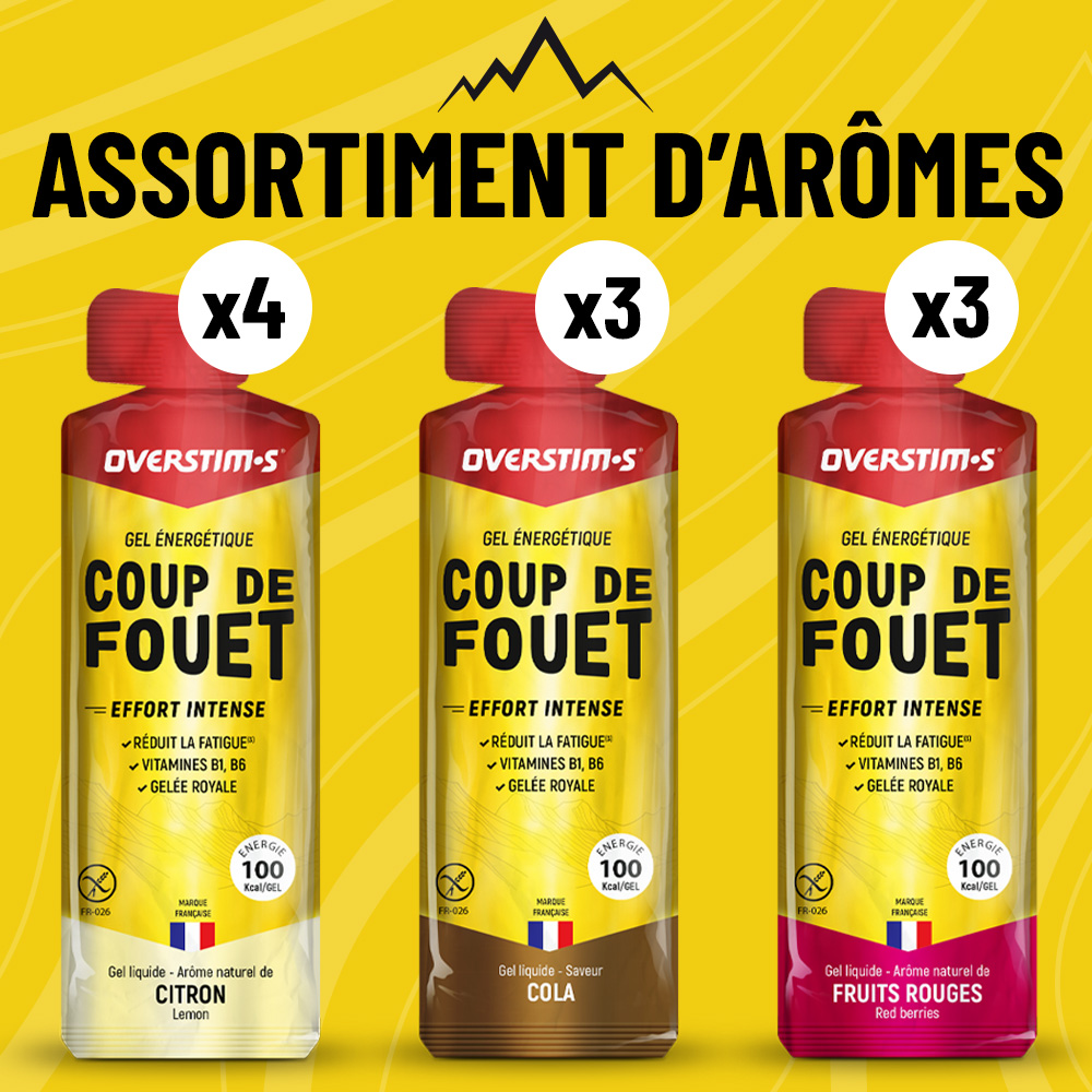 The COUP DE FOUET gel is characterized by its liquid texture and a composition free of preservatives and acidity, ensuring excellent gastrointestinal tolerance without the fear of digestive discomfort, even after several hours of effort.