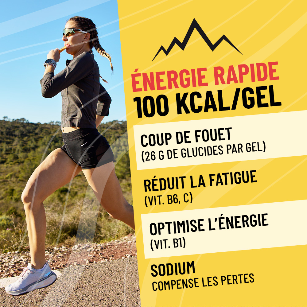 With its brand-new sachet format, the COUP DE FOUET energy gel now offers you 20% more energy in a more compact, convenient, and easily transportable packaging.