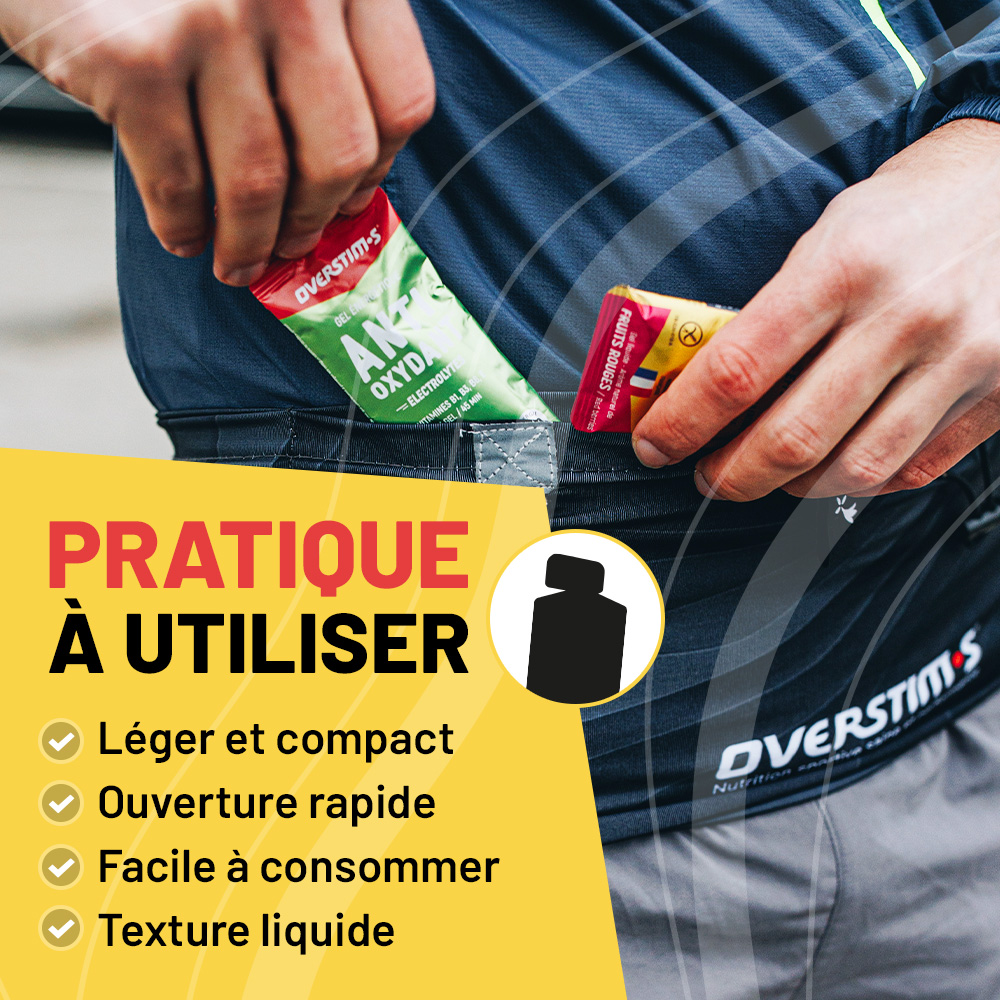 The COUP DE FOUET gel is characterized by its liquid texture and a composition free of preservatives and acidity, ensuring excellent gastrointestinal tolerance without the fear of digestive discomfort, even after several hours of effort.