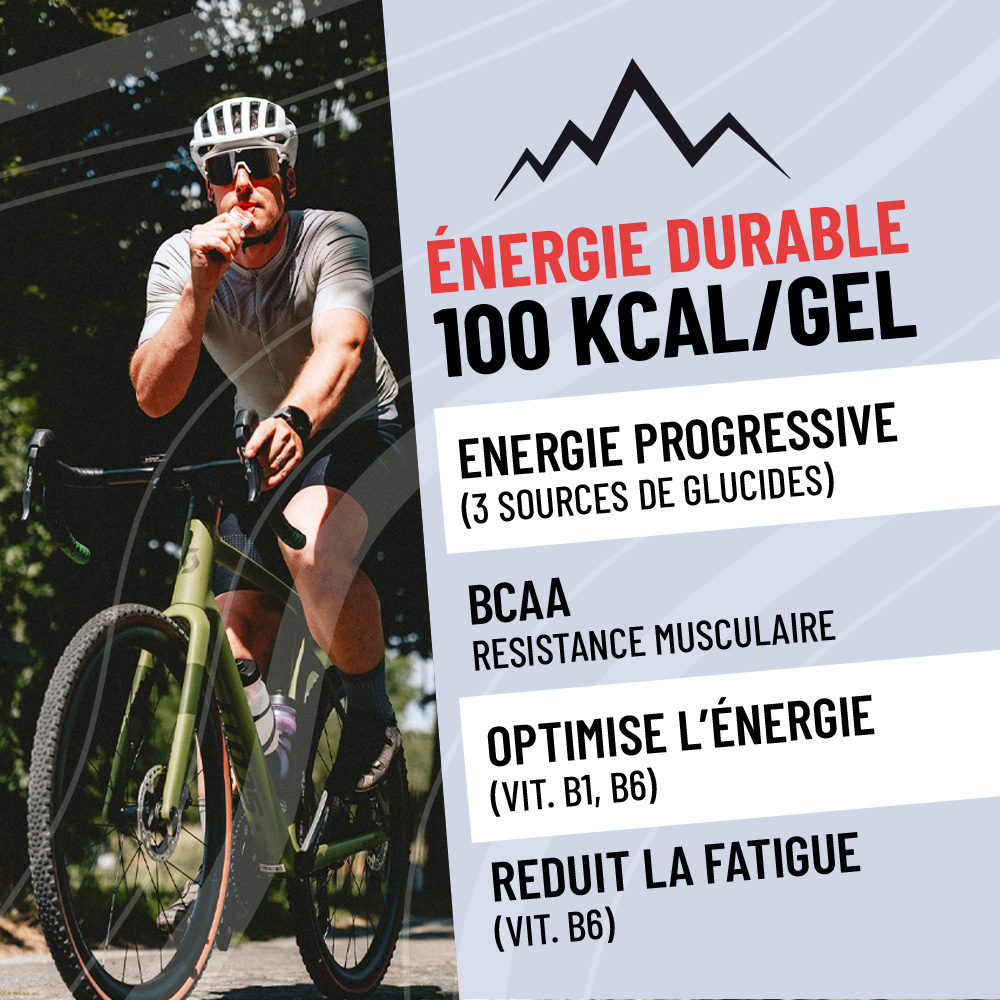 The ENERGIX energy gel is specifically designed for long distances. It provides sustained energy during endurance sports such as marathons, trail running, cycling, mountain biking, or triathlons.